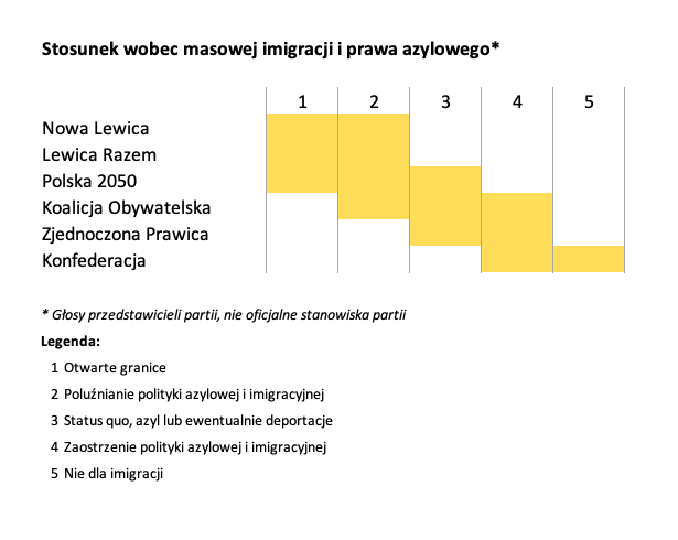 Stanowiska uszeregowano od najbardziej otwartych na imigrację do najbardziej zamkniętych.